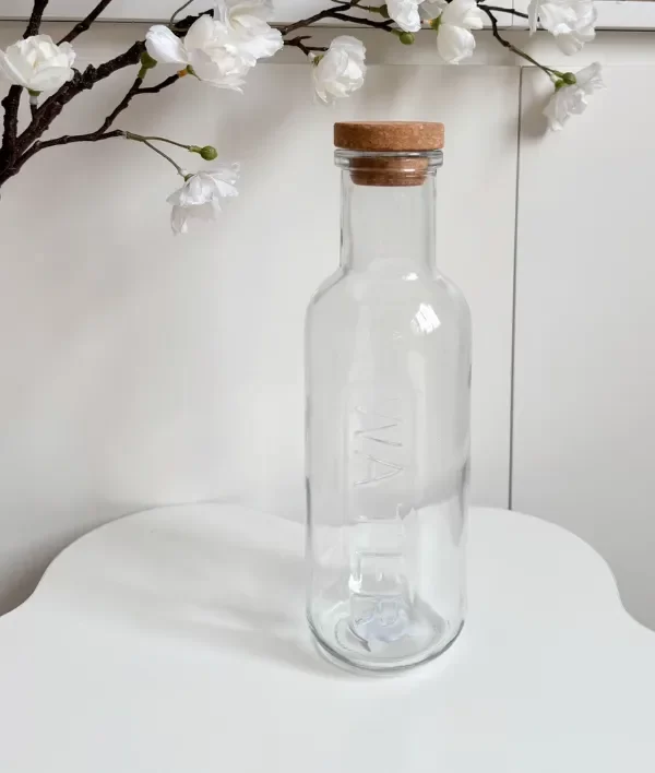 Botella de vidrio "water" con tapón corcho - 1 litro