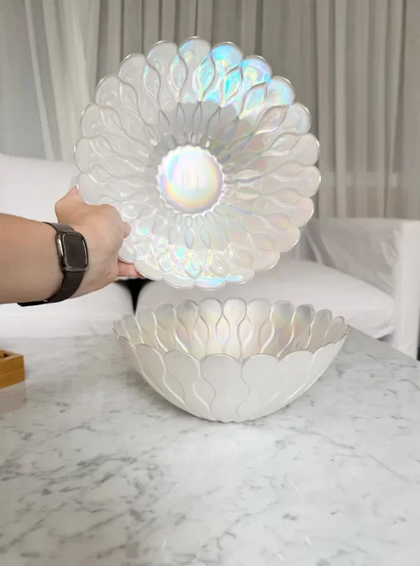 Bowl Con Hojas De Vidrio Blanco Perlado