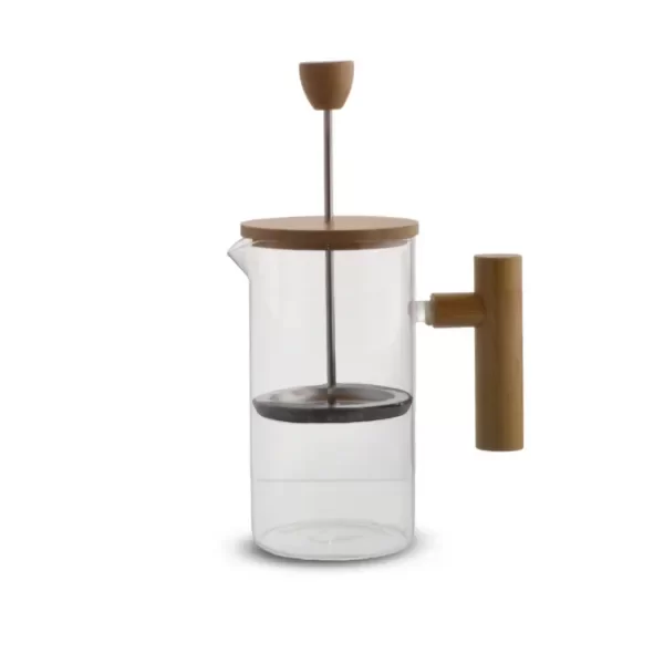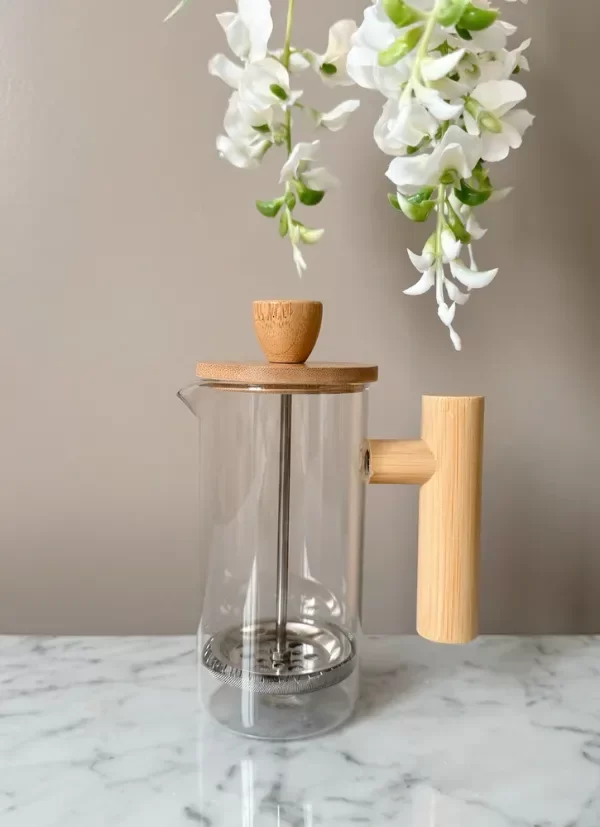 Cafetera francesa de vidrio a presion con asa de bambu redonda