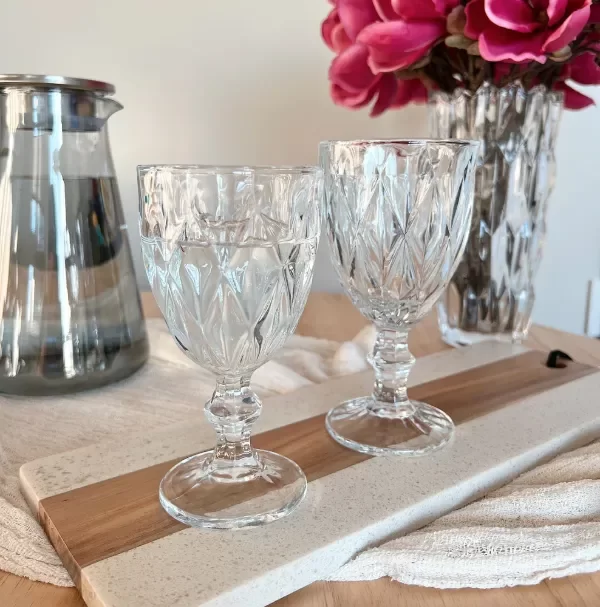 Set x6 copas de vidrio transparente con rombos grande 235ml