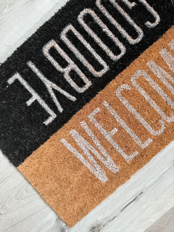 Felpudo de coco impreso con "Welcome/Goodbye"