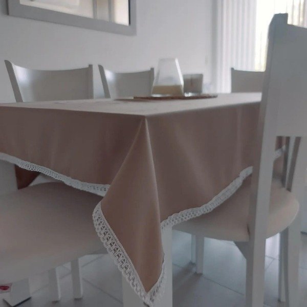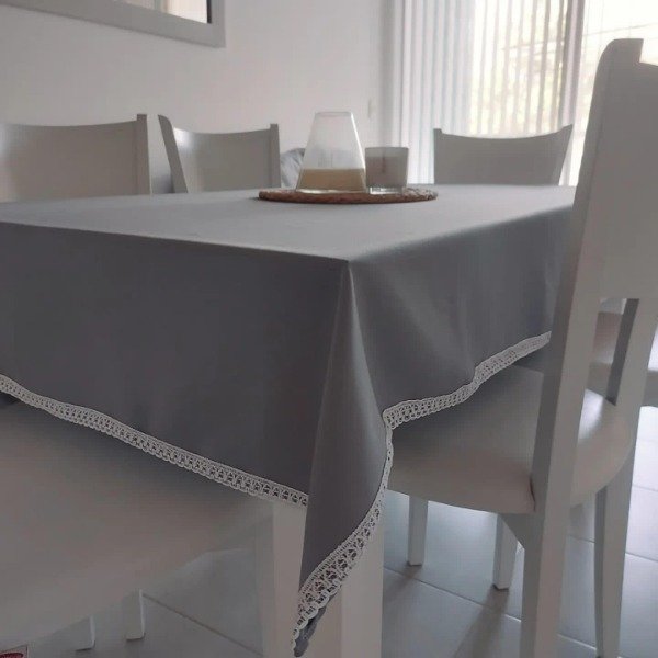 Mantel confeccionado en Tropical con terminaciones en puntilla